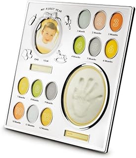 Zilverstad 7702231 Cadre Photos Première Année avec Empreinte sur Argile Argenté Laqué Brillant
