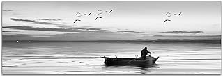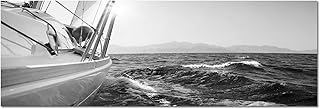 Paul Sinus Art Photo sur toile panoramique noir/blanc 120 x 40 cm - Motif mer, voilier et coucher de soleil
