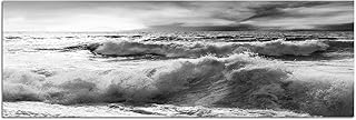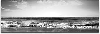 Paul Sinus Art Photo sur toile panoramique Noir/blanc 150 x 50 cm Plage mer vagues coucher de soleil