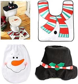 Gebkiiy Noël Père Père Noël Décoration de fête Toilette Couvercle de siège de Toilette + Toilette Porte-Papier Réservoir d'eau + Tapis Ensembles de Salle de Bain Décorations de nouveauté