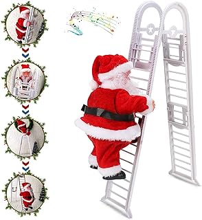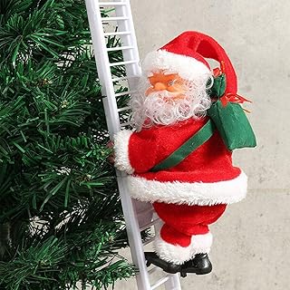 WELLXUNK® Échelle Père Noël, Électrique Le père Noël Escalade Échelle, Jouer de la Musique automatiquement Escalade de noël Santa, Ornement Décoration de Noël Figurine Ornement Cadeaux fête Décor