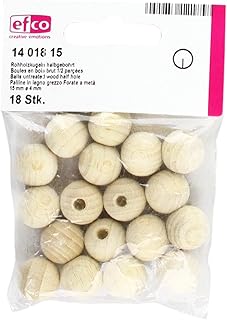 Efco 15 pièces 20 mm Perles en Bois Non traité avec Trou de 4 mm de diamètre, Marron