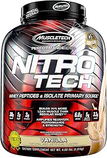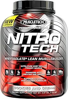 FAST RECOVERY - MuscleTech Nitro-Tech Whey Gold has 24g of protein, 4g of glutamine & precursor and 5.5g of BCAA for better muscle protein synthesis and recovery ABSORBS FAST and DIGESTS EASY - Nitro-Tech Whey Gold uses a superior cold microfiltration process to give you a higher quality whey protein powder by MuscleTech NitroTech Performance Series Whey Isolate Chocolate 4lb Visit the MuscleTech Store 78 ratings $7699 ($1.20 / Ounce) About this item Ultra Pure Whey Isolate Primary Source Enhanced With Creatine and Aminos Superior To Other Whey Protein Formulas Frequently bought together + + Total price: $123.30 $32.46 ($2.30/Ounce) $13.85
