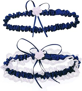 JZK Bleu Foncé Dentelle Bleue Satin Jarretière de Mariée Ensemble pour Accessoires de Mariée pour Jour du Mariage Partie de Poule Mariée pour Faire Fête Cadeaux de Douche Nuptiale pour Mariée