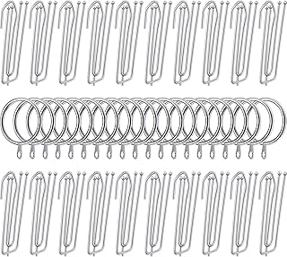 kungfu Mall 150PCS Accessoires de rideau 100 PCS Crochets de rideau en métal argenté Crochets de draperie, 50 Anneaux de rideau en métal PCS Anneaux suspendus pour rideaux suspendus