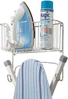 mDesign table de repassage à suspendre – planche à repasser avec corbeille pour fer à repasser et autres accessoires – support table à repasser mural, peu encombrant – couleur: chrome