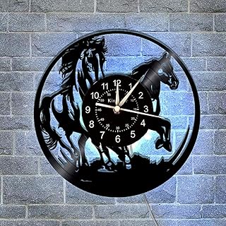 Smotly Horloge Murale en Vinyle, Cheval Horloge Murale Record, décoration Art Faits à la Main Horloge Murale de la Maison, Cadeau créatif pour Les Amateurs de Chevaux,A