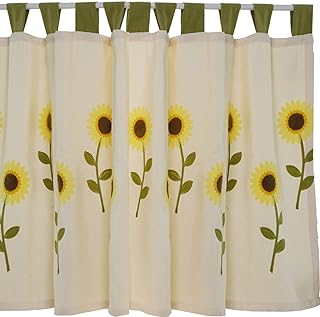 Rideau Courte Rideaux de cuisine de café rideaux de tournesol ensoleillés pastoraux américains pour rideaux de demi-tringle de fenêtre de cuisine avec motif de broderie (largeur 200 cm,hauteur 107 cm)