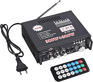 PROZOR Amplificateur Audio Stéréo Bluetooth 300W + 300W Amplificateur Audio Mini Amplificateur Audio Numérique HiFi Musique SD USB FM 12V / 220V avec Télécommande IR