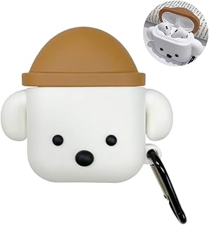 SGVAHY Adorable coque pour Airpods 1 et 2, motif chiens créatifs avec chapeaux colorés, coque en silicone souple avec porte-clés boîte de chargement sans fil pour Airpods 1 et 2 (Bronw)