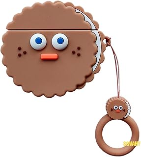 SGVAHY Coque pour Airpods 1 et 2, design mignon 3D en silicone souple avec anneau porte-boucle, Kawaii Fun Cool Skin Résistant aux chocs Coque de chargement pour Apple Airpods (biscuits kaki)