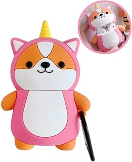 SGVAHY Coque pour Airpods 1 et 2 en silicone souple Motif corgi 3D avec anneau porte-boucle, Kawaii Fun Cool Skin Résistant aux chocs Coque de chargement pour Apple Airpods (Corgi jaune)