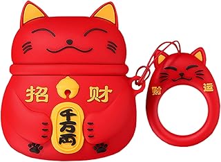 SGVAHY Adorable coque pour Airpods 1 et 2, motif chat porte-bonheur kawaii amusant et doux en silicone avec anneau support de boucle de chargement sans fil pour Airpods 1 et 2 (chat rouge)