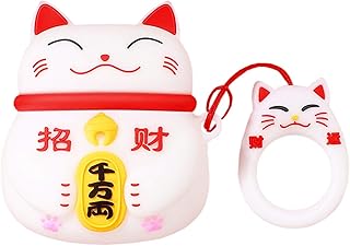 SGVAHY Coque mignonne pour Airpods 1 et 2, motif chat porte-bonheur kawaii amusant et doux en silicone avec anneau support de boucle de chargement sans fil Airpods 1 et 2 (blanc chat)