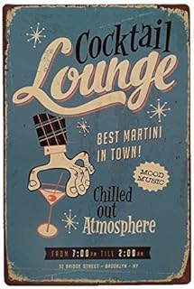 Panneau vintage en métal - Décoration murale avec inscription 'Cocktail'