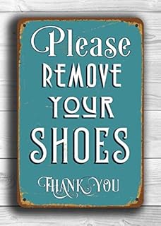 To243Finn Please Remove Your Shoes Plaque métallique en métal pour enlever Vos Chaussures Décoration de la Maison Pas de Chaussures Panneau Imprimable Mur supprimer Chaussures Panneau Art Métal