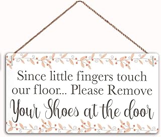 Maiyuan Plaque en bois avec inscription « Since Little Fingers Touch Our Floor Please Remove Your Shoes at The Door » 25,4 x 12,7 cm