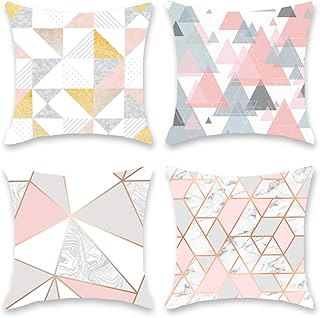 YuhooTech Housse de Coussin Taie d'oreiller Coton Taie Coussin de Canapé Marbre Style Lot de 4 Doux Coton Housses de Coussin Carré pour Chambre Salon Canapé Lit Voiture 45x45 cm,Rose