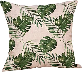 4 Pcs Housse de Coussin 45 x 45 cm, Carré Coussin Décoratif Taie d'oreiller Canapé Housse Coussin Coton Lin Décoration Maison pour Lit Chambre Salon Bureau Voiture Tropical Feuilles Palmier Motif