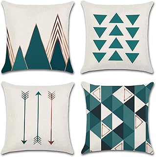 4 PCS Housse de Coussin, Coton et Lin Housses de Coussin Canapé Voiture Maison Décoratif Taie d'oreiller, Utilisé pour Chambre Salon Bureau Voiture Canapé 45 x 45 cm (18 x 18') - Géométrie Simple