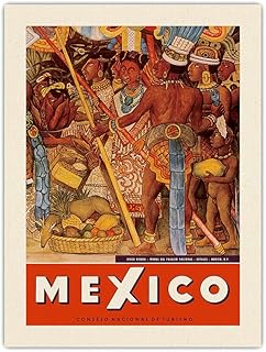 Mexique - Aztèques Indiens - Détail de Murale - Palais National (Palacio Nacional) - Mexico City - Affiche Voyage de Diego Rivera c.1950s - Toile Organique Impression d'art 61x81cm