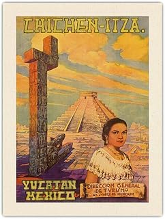 Chichen Itza - Yucatan, Mexique - El Castillo Pyramide Maya - Affiche Voyage de Flores ESP c.1950s - Toile Organique Impression d'art 61x81cm