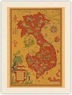 Indochine Française - Vietnam, Cambodge, Laos - Carte colorée de Lucien Boucher c.1938 - Toile Organique Impression d'art 61x81cm