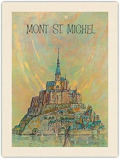 Mont-Saint-Michel - Normandie, France - Affiche Voyage de Earl Thollander c.1950s - Toile Organique Impression d'art 61x81cm