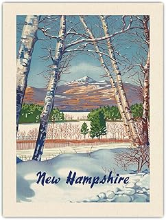 New Hampshire - Chaîne de Montagnes présidentielle, Montagnes Blanches - Affiche Voyage c.1950s - Toile Organique Impression d'art 61x81cm